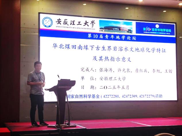 会上,学院参会师生围绕地学前沿领域展开积极交流与研讨,与同行深入探讨水文地球化学、矿产与资源和工程地质等领域的最新研究动态。姬广忠副教授做了“粘弹性煤层随倔地震三维数值模拟与波场分析”的报告,张海涛副教授做了“华北煤田南缘下古生界岩溶水文地球化学特征及其热指导意义”的报告,肖鑫副教授做了“黄铁矿地球化学行为对斑岩-矽卡岩型成矿过程的指示”的报告,孙斌杨博士做了“煤系上覆地层移动变形多参数感知全程响应特征研究”的报告,苏雪雪博士做了“物理化学作用对滑带土三维孔隙结构的影响规律及量化表征”的报告,王锴博士做了“基于非平衡热力学的裂隙化介质热-渗-力-化耦合建模与应用研究”的报告。硕士研究生周志伟和韦可民分别做了“低渗煤柱坝体溶质运移实验与模型研究”和“不同培养和采收场景采收微藻的环境足迹评估”的报告。