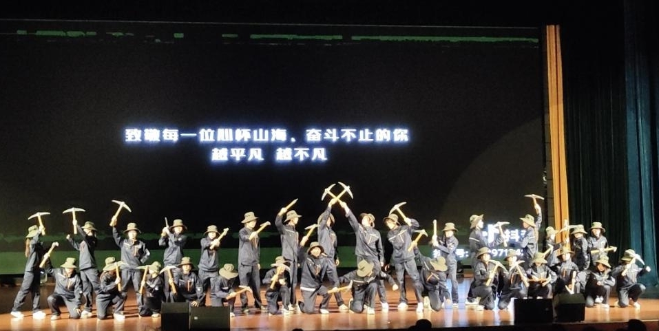舞蹈《初心》紧扣学院地学特色,以饱含力量的肢体语言,深情讲述了一代代地质工作者在广袤野外勘探中坚守信念、叩问大地的动人故事。舞台上,舞者们化身坚毅的地质队员,将铁锤敲击岩层的铿锵、图纸上经纬交织的严谨、跋山涉水的艰辛与发现宝藏的喜悦,凝练为极具张力的艺术表达。