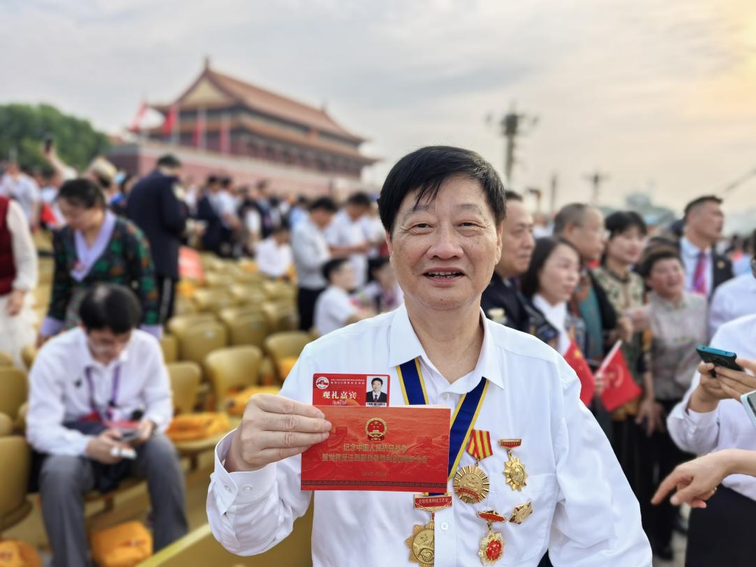 铭记伟大历史胜利,凝聚正义和平力量。9月3日上午,纪念中国人民抗日战争暨世界反法西斯战争胜利80周年大会在北京天安门广场隆重举行。我校地球与环境学院教授、全国劳动模范、全国道德模范、大国工匠、全国创新争先奖、李四光地质科学奖获得者朱恒银应邀参加。