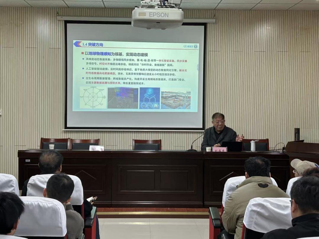 刘盛东教授从透明地质的发展现状切入,系统阐述了该技术发展的背景与当前面临的关键挑战,明确提出以地球物理感知为根基、实现动态地质建模是重要的突破方向。他重点介绍了所带领的科研团队在构建“多源数据获取—高质量融合—动态建模”全链条透明地质关键技术体系方面的进展。该体系集成了随掘、随采、随钻等一系列实时监测与测量技术模块,并建立起地质透明化管理平台的动态更新机制,实现了对地质条件的实时感知与建模。报告最后,刘盛东教授回顾了矿井地球物理装备的演进历程,并对新一代采集装备的智能化升级、一体化采集管理平台的发展前景进行了展望。