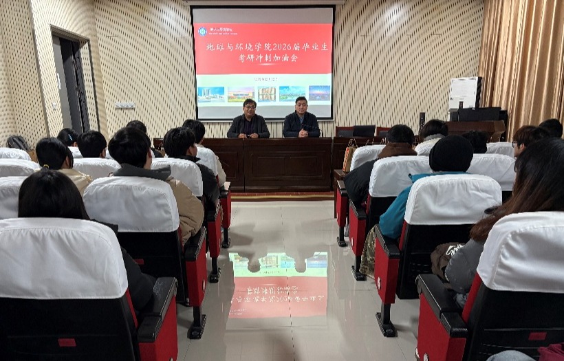 为鼓舞考研学子士气,传递学院关怀与支持,12月12日下午,地球与环境学院于静远楼B406会议室举行2026届考研冲刺暨暖心加油活动。院党委书记陈楠、党委副书记贾伟、毕业班辅导员及考研学生代表参加了本次活动。