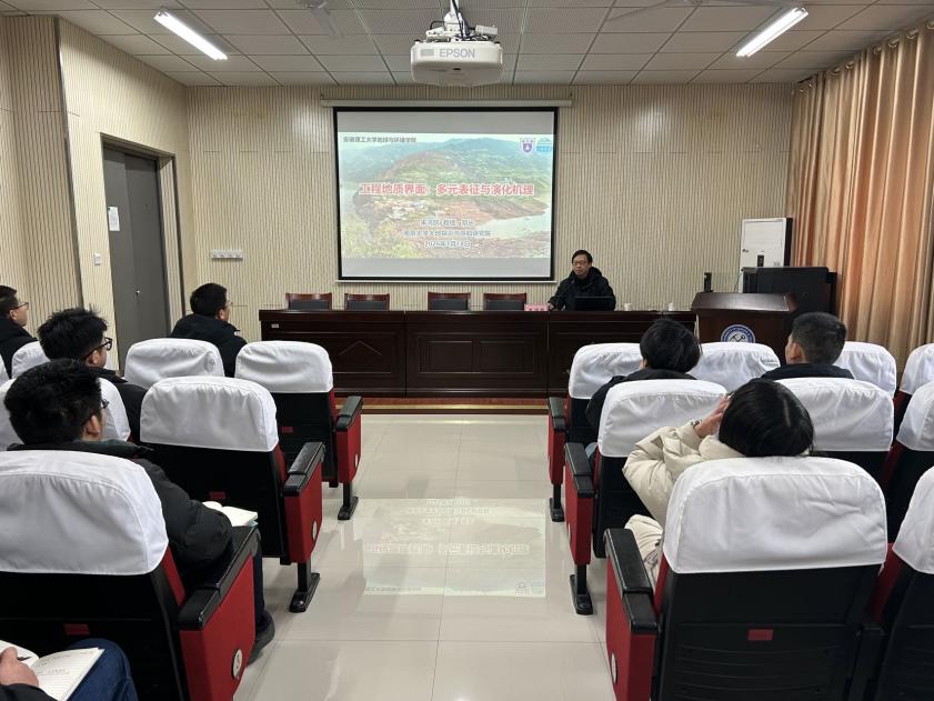 朱鸿鹄教授以“工程地质界面:多元表征与演化机理”为题展开报告。他围绕复杂地质环境和多场耦合作用下的工程地质界面演化特征与工程响应问题,系统阐述了界面的多元表征方法、演化过程解析及其在工程结构稳定性分析中的关键作用。结合典型工程实例,朱教授深入阐释了不同工程条件下界面演化与结构响应之间的耦合关系。报告内容体系完整、立足前沿,为工程地质与地质灾害防治研究提供了新的理论视角与技术路径。