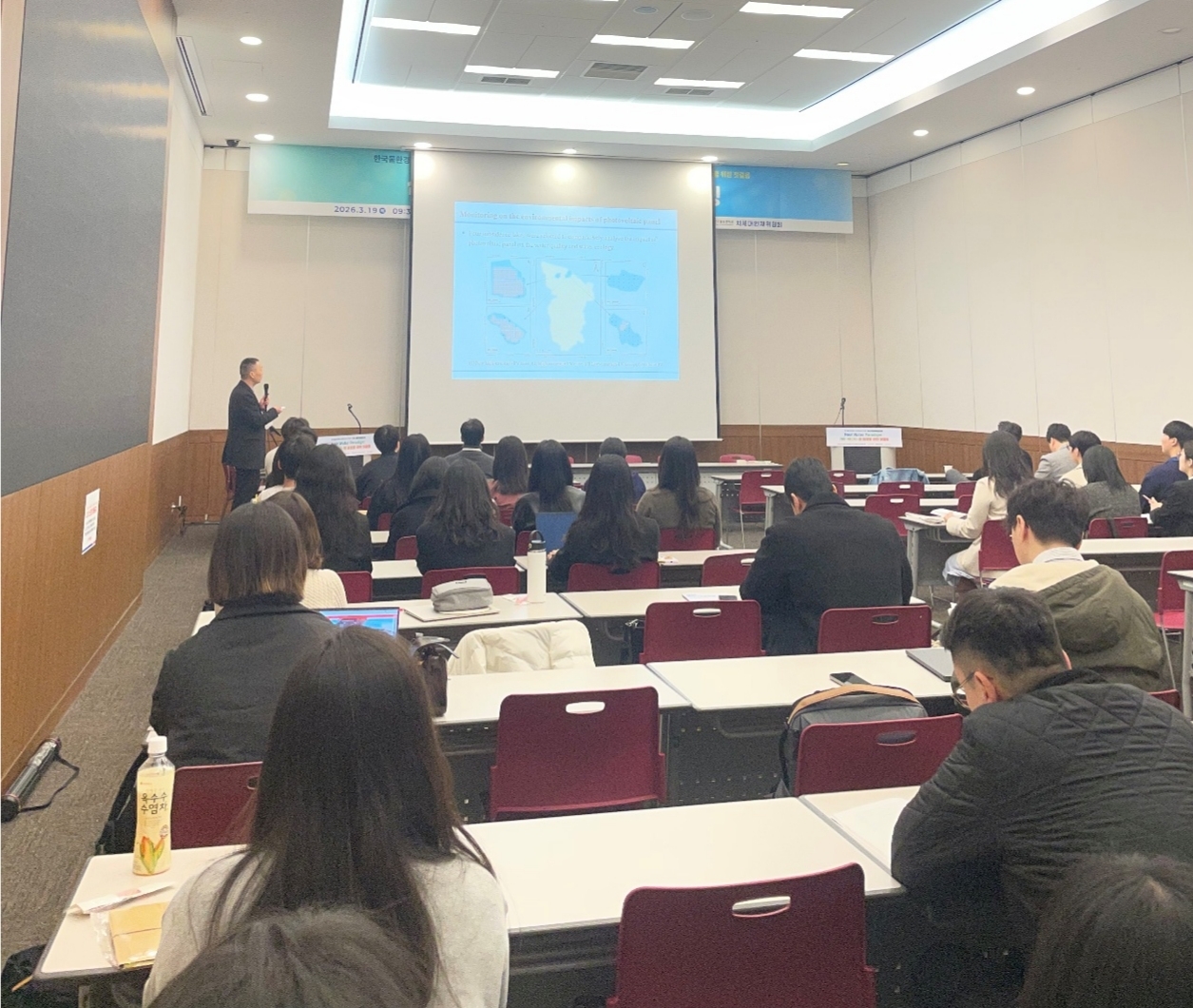 到访期间,陈要平参加高丽大学环境工程专业学术研讨会,做题为《Case studies on mitigating the environmental impacts induced by coal mining》的专题讲座;并参加2026韩国水行业联合会议的“Early career researcher networking & mentoring”论坛,发表题为《Reutilization of subsidence ponds caused by coal mining in Eastern China: pathways and environmental issues》的口头报告。