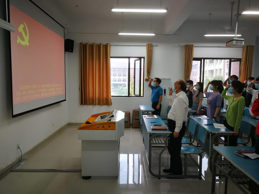 会上,在党委副书记金德的带领下,81名毕业班党员面对鲜红的党旗,庄严宣誓,重温入党誓词,立誓为共产主义奋斗终身。党委秘书贾伟就党组织关系转接等事项作了强调布置。