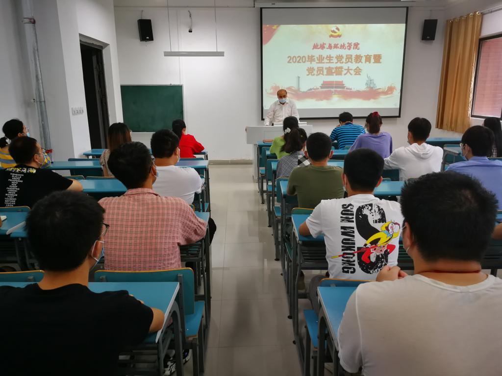 6月16日上午,地球与环境学院党委在静远楼B202教室召开2020届毕业班党员教育大会,学院党委书记盛鹏飞、副书记金德、学生党支部书记以及全体返校毕业生党员参加了大会。