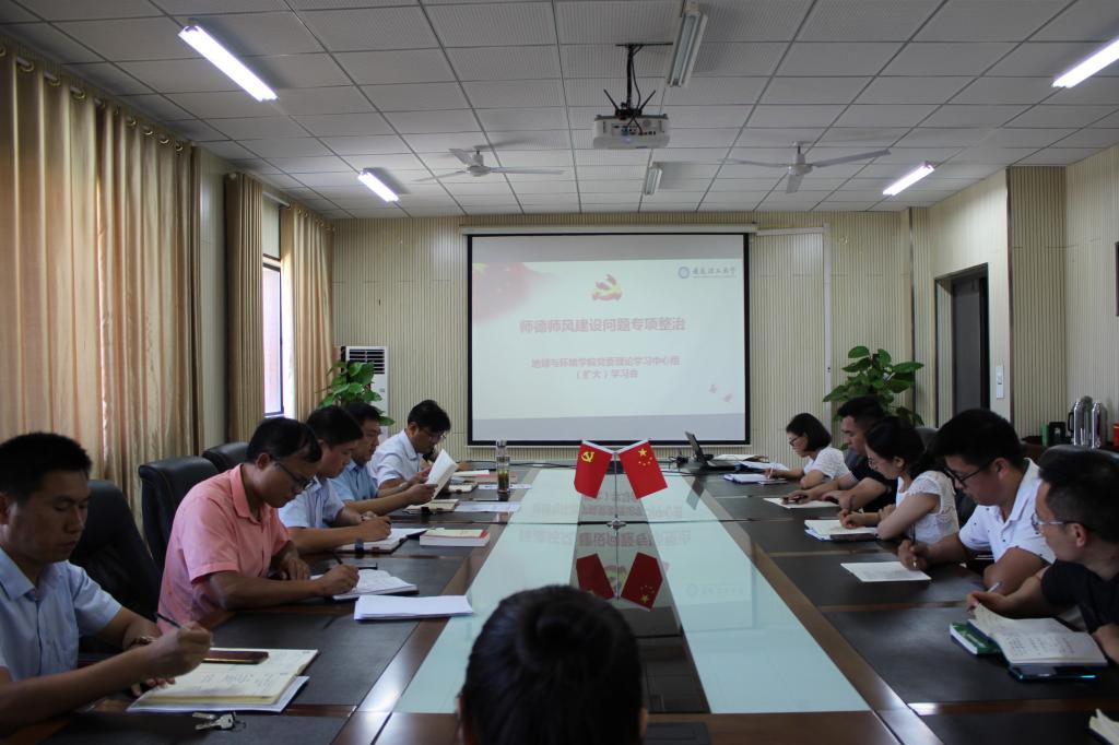 9月24日上午,地球与环境学院党委在静远楼B414会议室召开理论学习中心组学习(扩大)会议,重点开展师德师风专题学习,学院领导班子成员、各系负责人、党支部书记、学生辅导员参加学习。