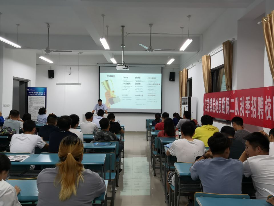 9月17日晚,江苏煤炭地质局勘探二队应邀在地球与环境学院举办专场招聘会。招聘宣讲会在静远楼B202教室举行,学院近百名2020届毕业生参加了招聘会。