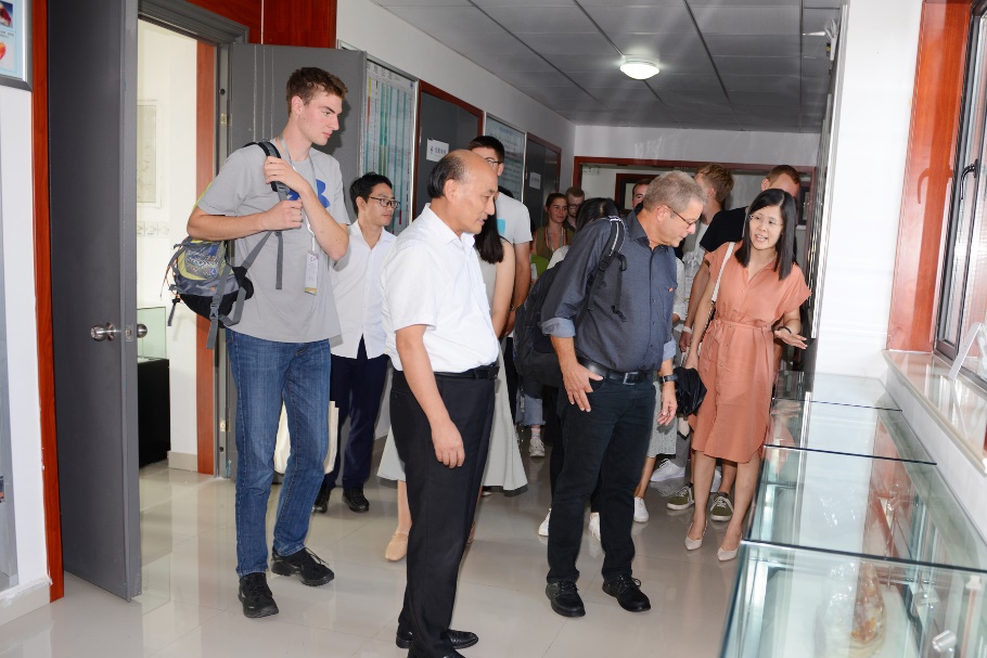 中德师生还一起参观了学院的文化走廊、地学展厅、沙盘模型、实验室等,并一路游览了我校的校园景观和图书馆、国家重点实验室。