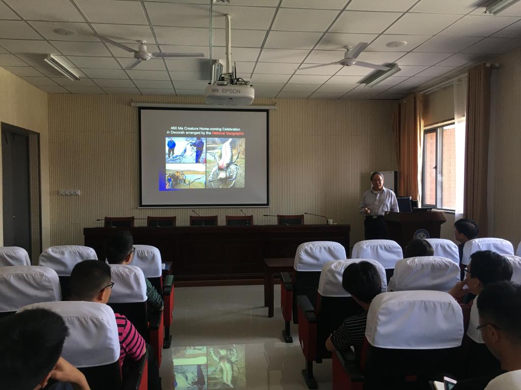 5月5日上午,应科技产业处、国际合作交流处、地球与环境学院的邀请,美国爱荷华大学地球与环境系刘怀宝教授来校进行学术交流,在学院学术报告厅作了题为“The Winneshiek Lagerstätte”(一个在特殊环境中保存的中奧陶世罕见化石群)学术讲座,许光泉教授主持了报告会,学院教师、硕士及博士研究生等50余人聆听了报告。