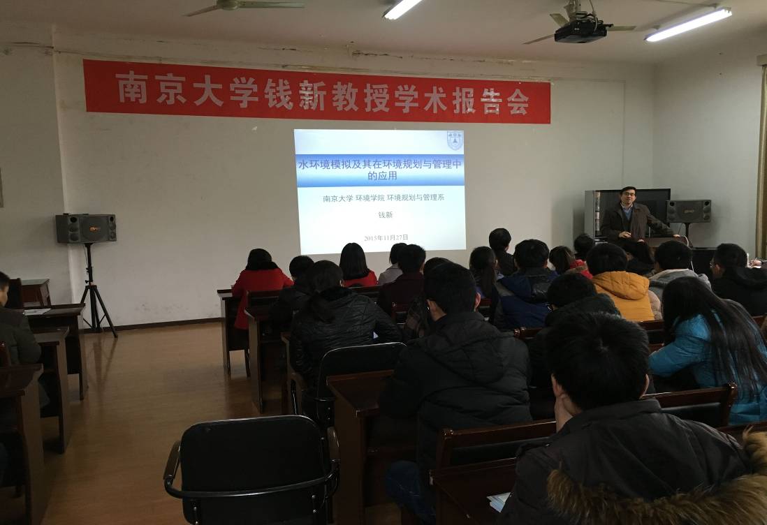 11月27日,应校科技产业处、地球与环境学院的邀请,南京大学环境学院环境规划与管理系主任钱新教授到我校进行学术交流,并在学院二楼学术报告厅做了题为“水环境模拟及其在环境规划与管理中的应用”的学术报告,环境、地质专业教师及研究生共计80余人参加报告会,院长胡友彪教授主持了报告会。